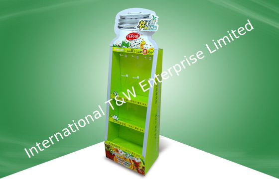 OEM /ODM Green Cardboard Display Stands With Hooks & Shelves For Health Care Products
