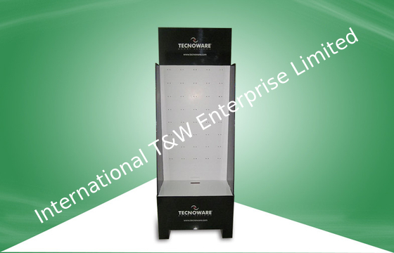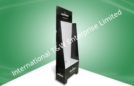 Black POP Cardboard Display Stands With Metal Hooks For Pomoting Electronic Products